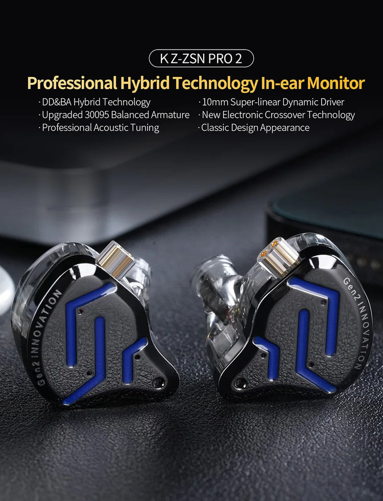 KZ ZSN PRO 2 1BA 1DD Hybrid Drive HIFI Metal In Ear Earphones Bass Earbud Sport Noise Cancelling Headset