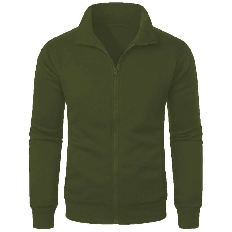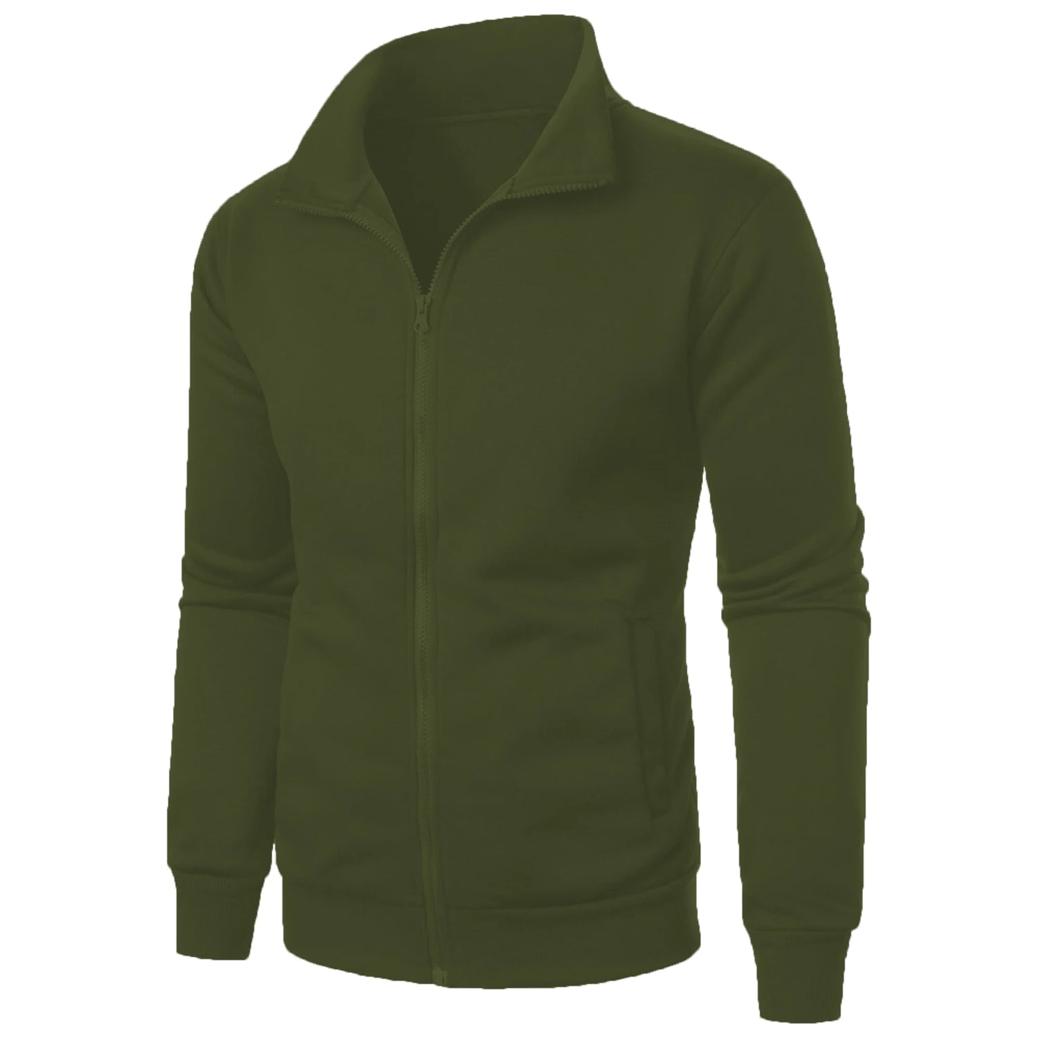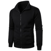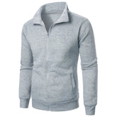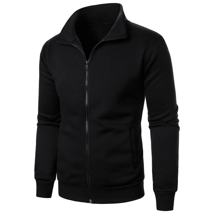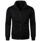 Men's casual sports zipper stand collar hoodie coat men's solid color cardigan