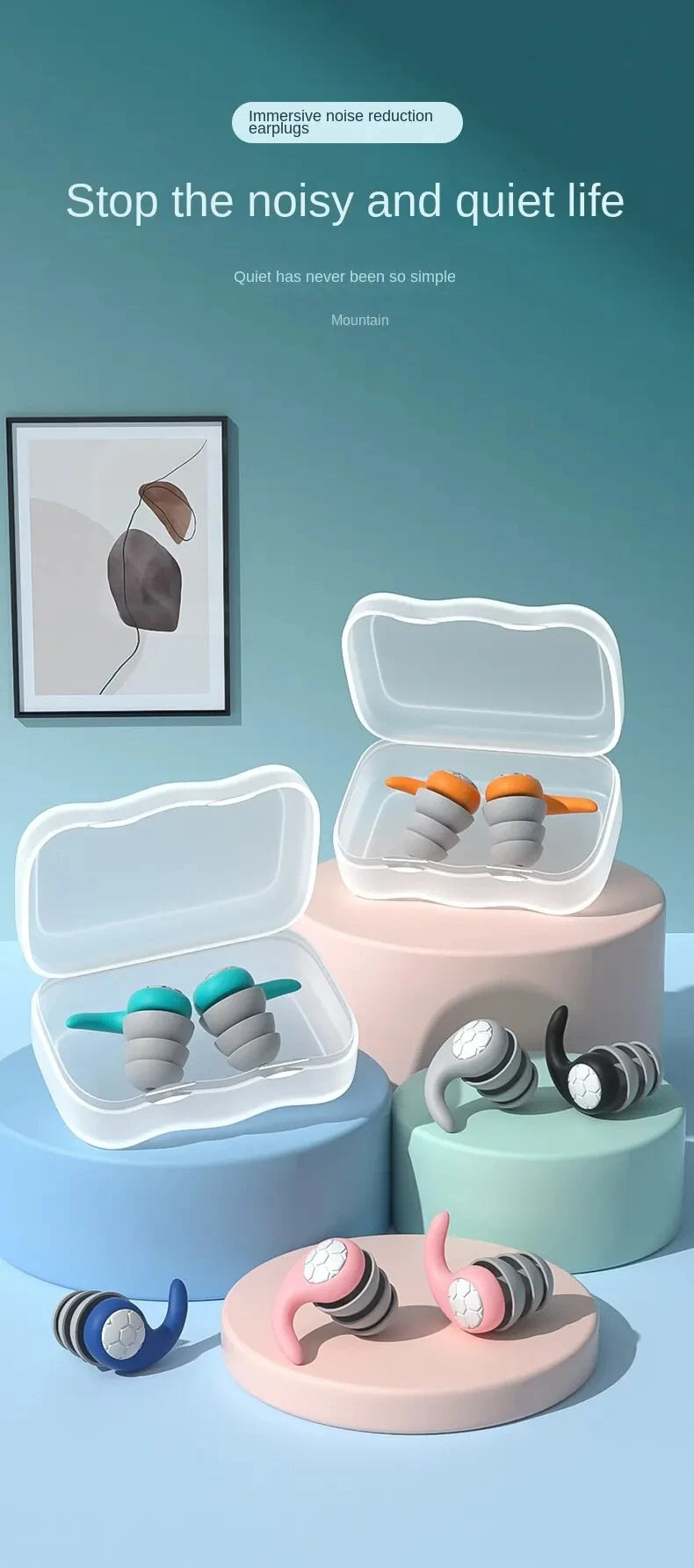 Silicone Noise Cancelling Earplugs Noise Filter Sleep Swimming Waterproof Three Layer Mute Earplugs