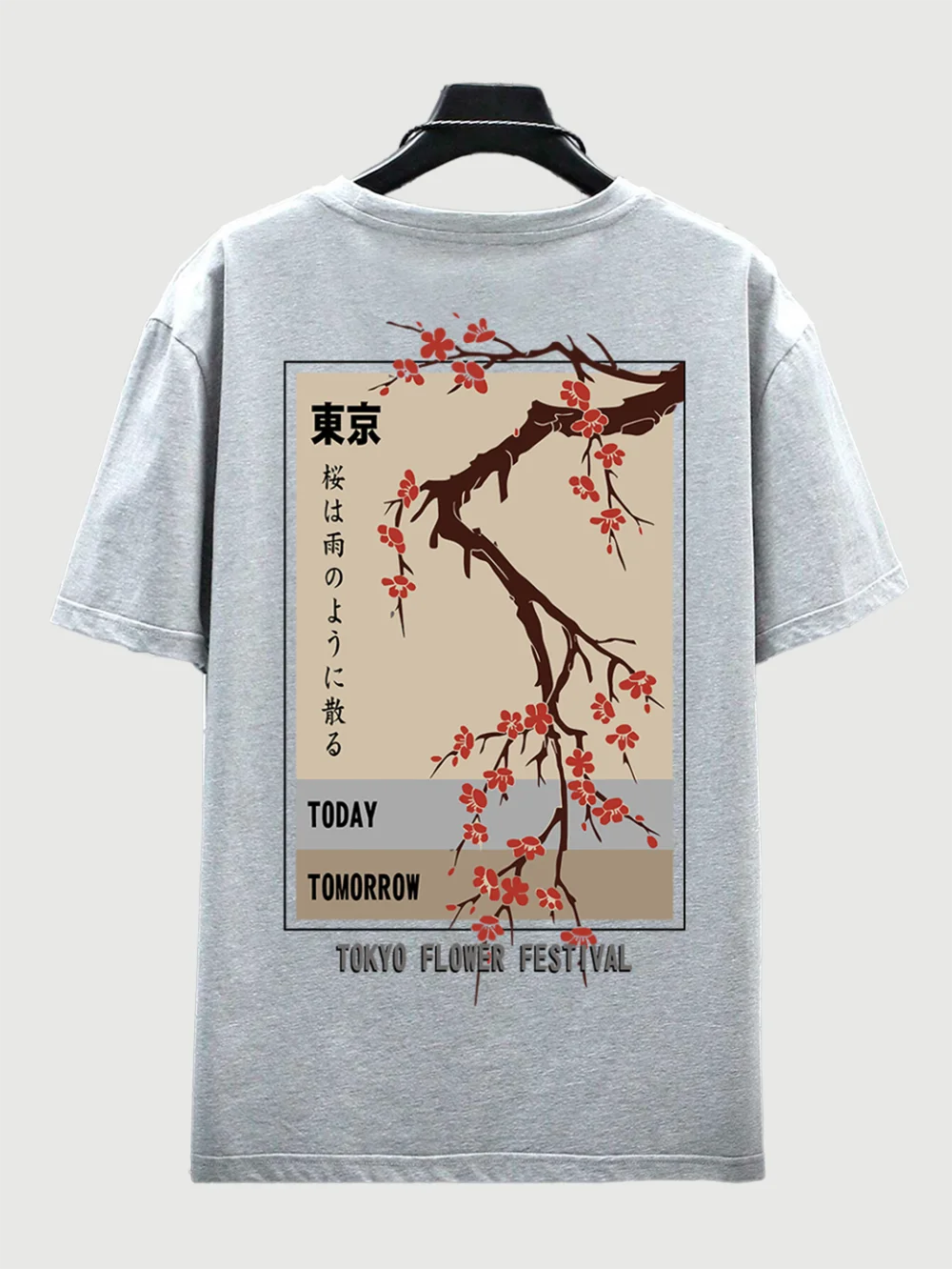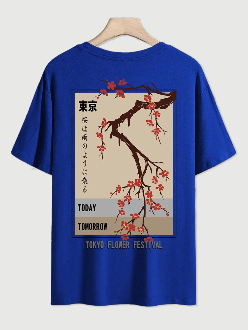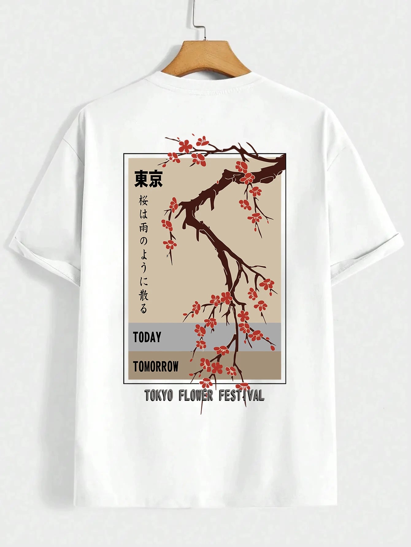 Today Tomorrow Tokyo Flower Festival T Shirt Men Fashion O-Neck Tshirts Summer Cotton Tops Fashion Loose Street Hip Hop T-Shirts