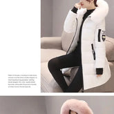 Winter Warm Fur Collar Hooded Women Parka Fashion Comfortable Zipper Pockets Design Long Jacket Elegant Slim Thick Female Coats