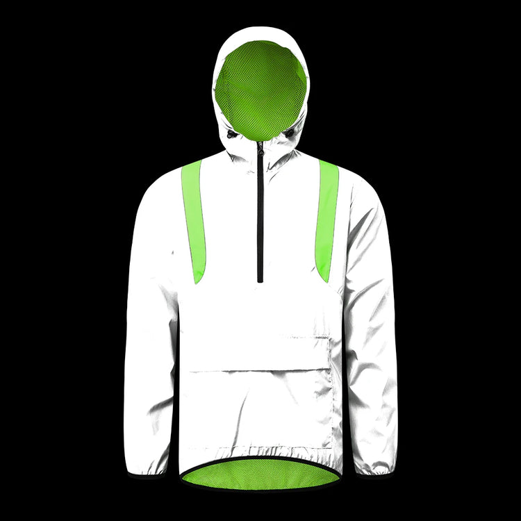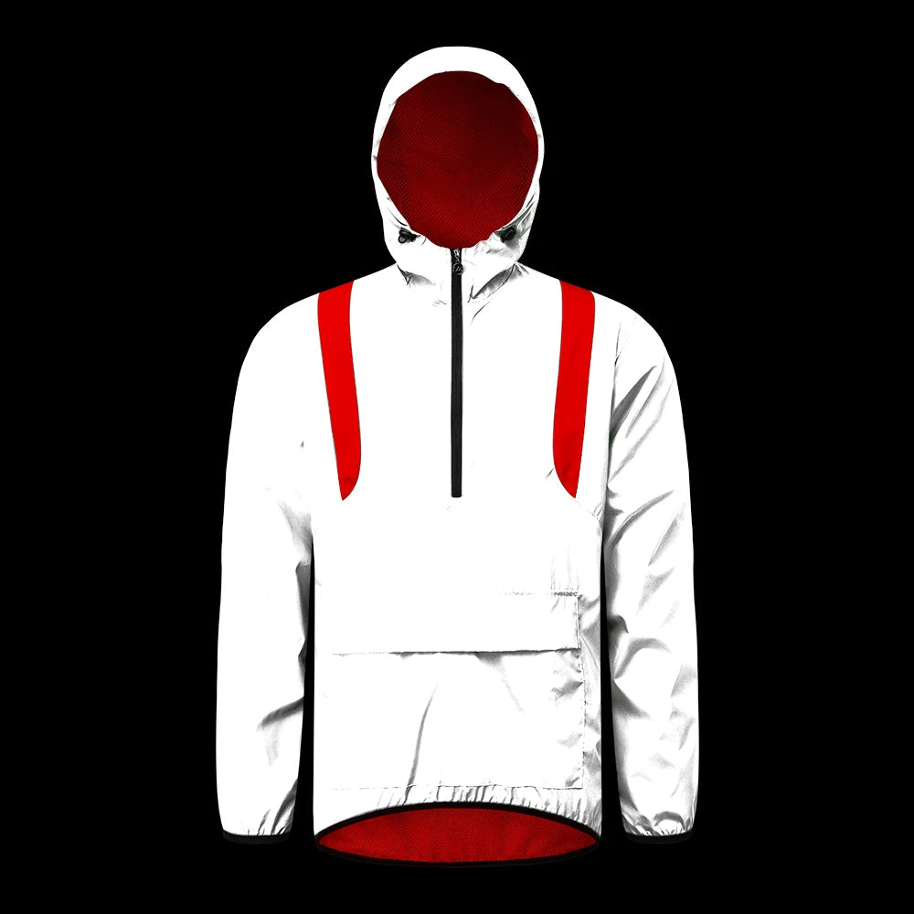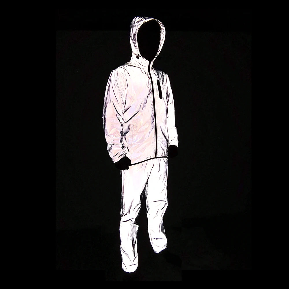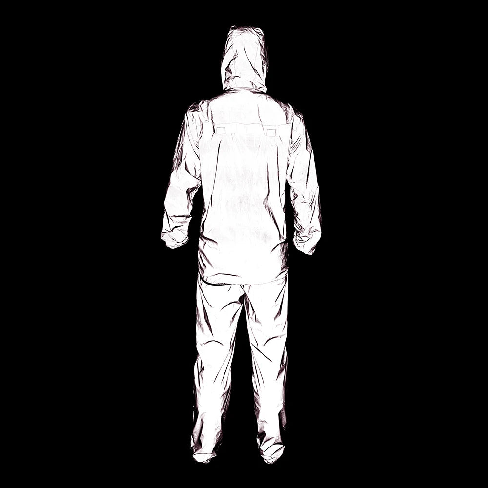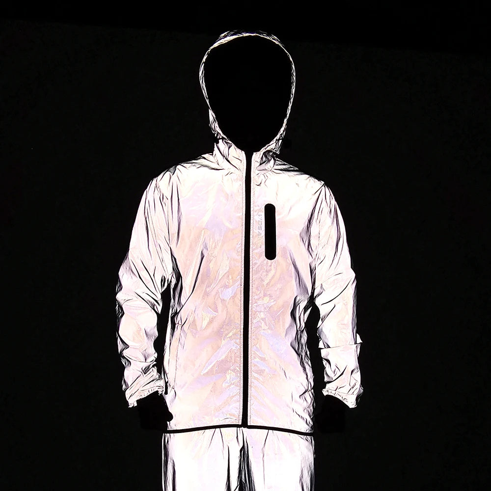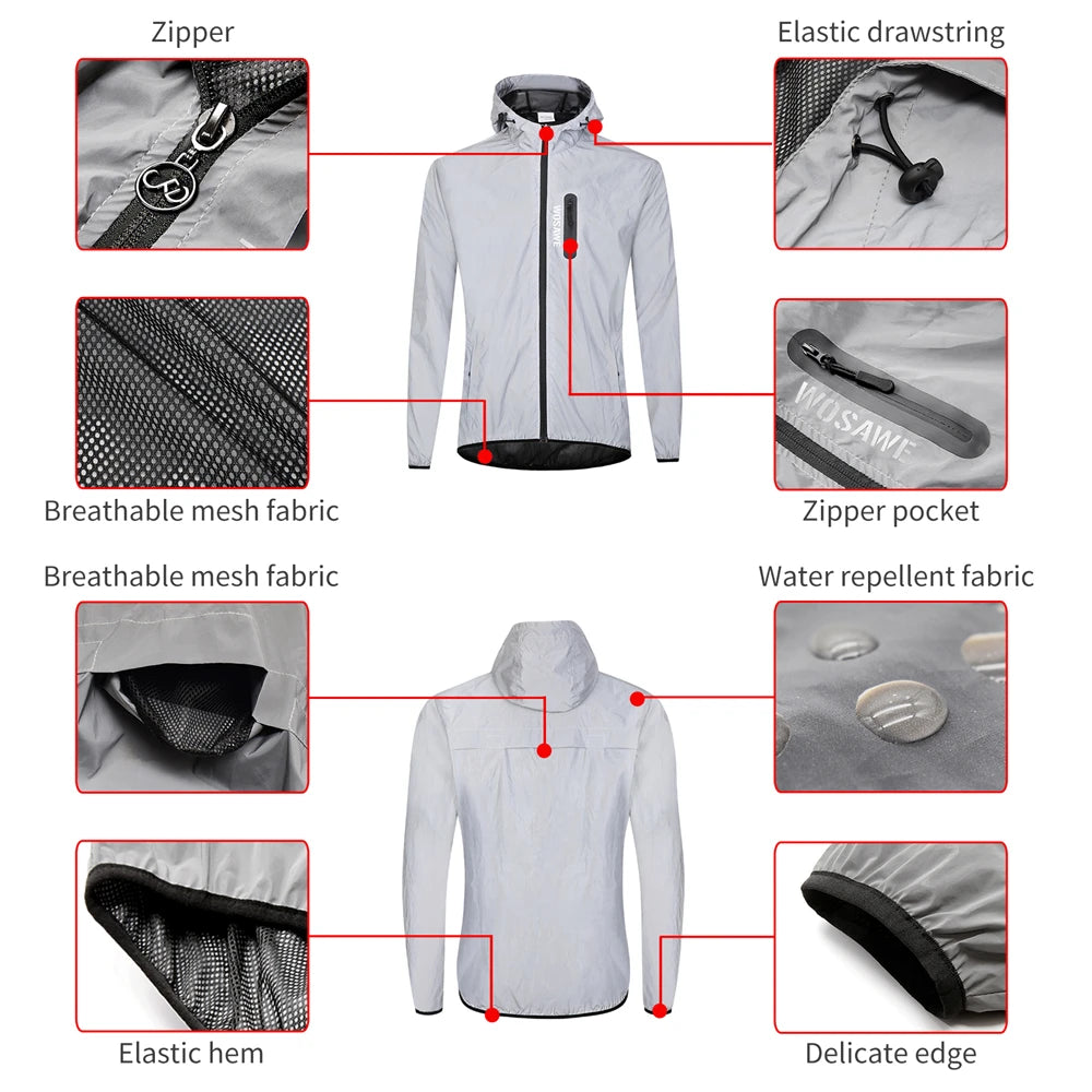 WOSAWE Full Reflective Jacket with Hoodie Waterproof Wind Breaker Men Women Hiking Cycling Running Safety Jacket High Visibility